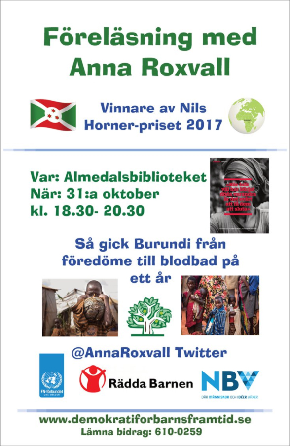 Publicerades november 2, 2017 kl. 588 × 904 i Anna Roxvall berättade om Burundi på Almedalsbiblioteket