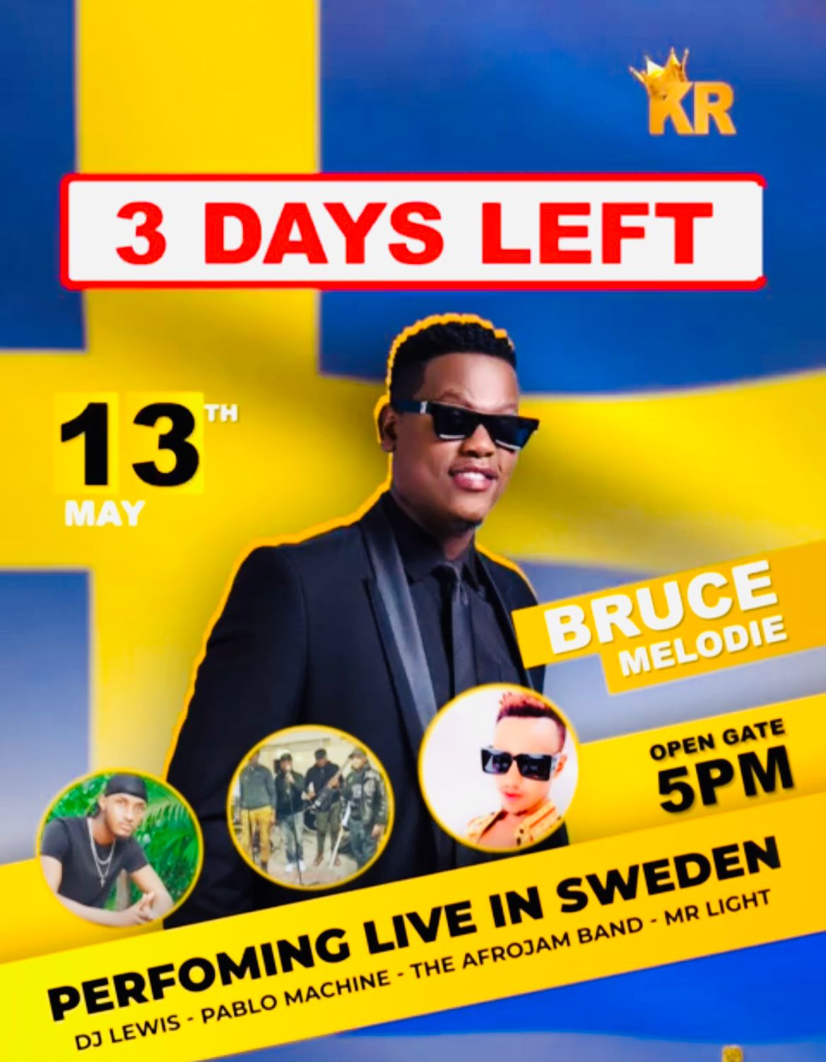 Den 13:e maj var det konsert med den burundiska artisten Bruce Melodie i Västerås. DBF-artisterna Trim Binnex och Mr Light uppträdde med sina egna låtar under kvällen till publikens stora behålling. Eventet lockade över 200 åhörare och hölls i den syrisk-ortodoxa kyrkan Sankt Koriakos i Västerås.